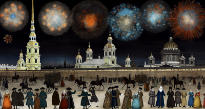 Вернувшись в Россию, Петр I активно приступил к организации первых крупных фейерверков, которые должны были стать символом нового, мощного государства. Один из первых масштабных фейерверков состоялся в 1703 году в честь закладки Санкт-Петербурга. Это событие ознаменовало начало новой эпохи в истории России, и фейерверки стали ярким символом перемен.